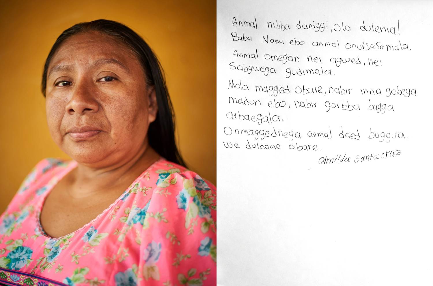 Las mujeres Gunadule nos vestimos como la madre tierra. Nuestro tejido es colorido. Con pequeños retazos de telas e hilos, creamos caminos, paisajes y el mar ubicándolos en capas hasta elaborar la mola, tejido que para nosotras significa protección e identidad.