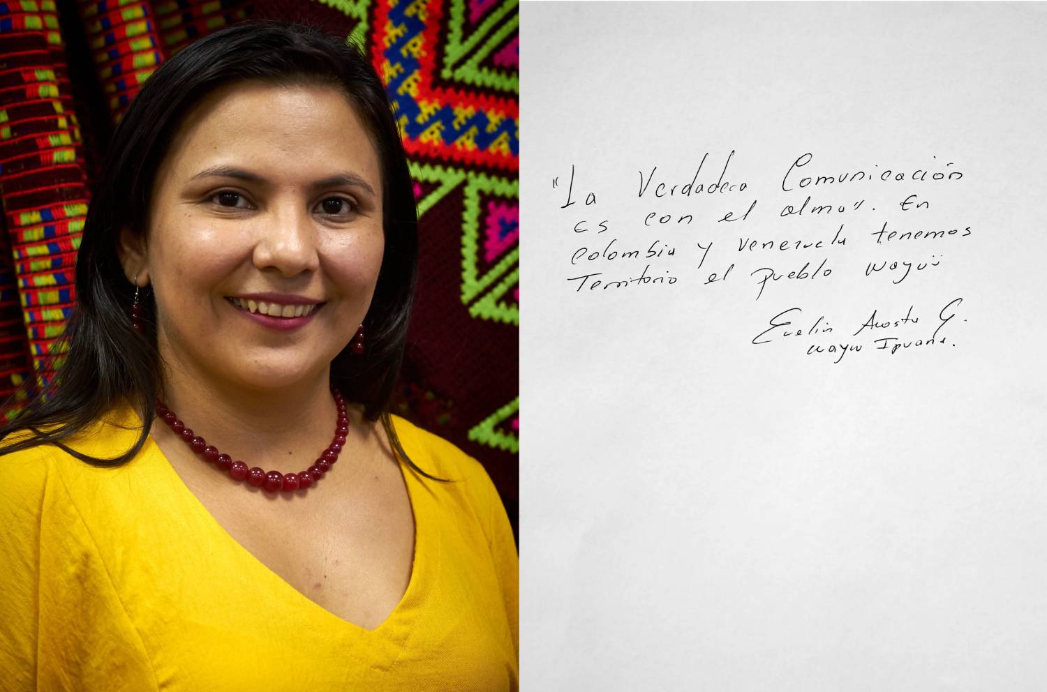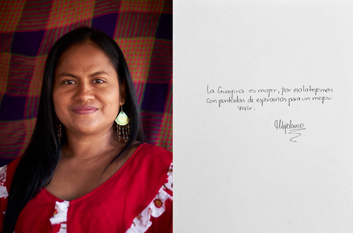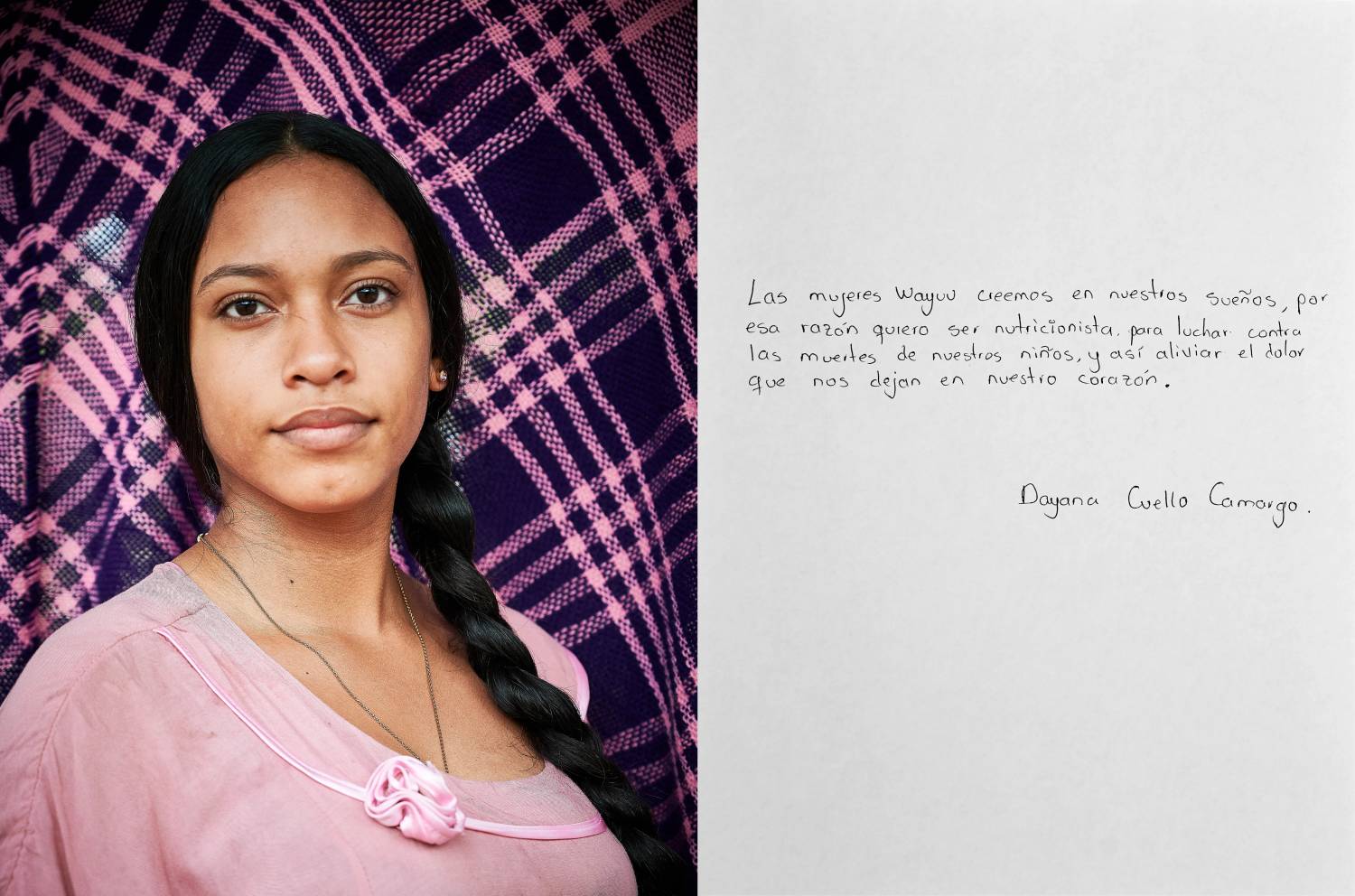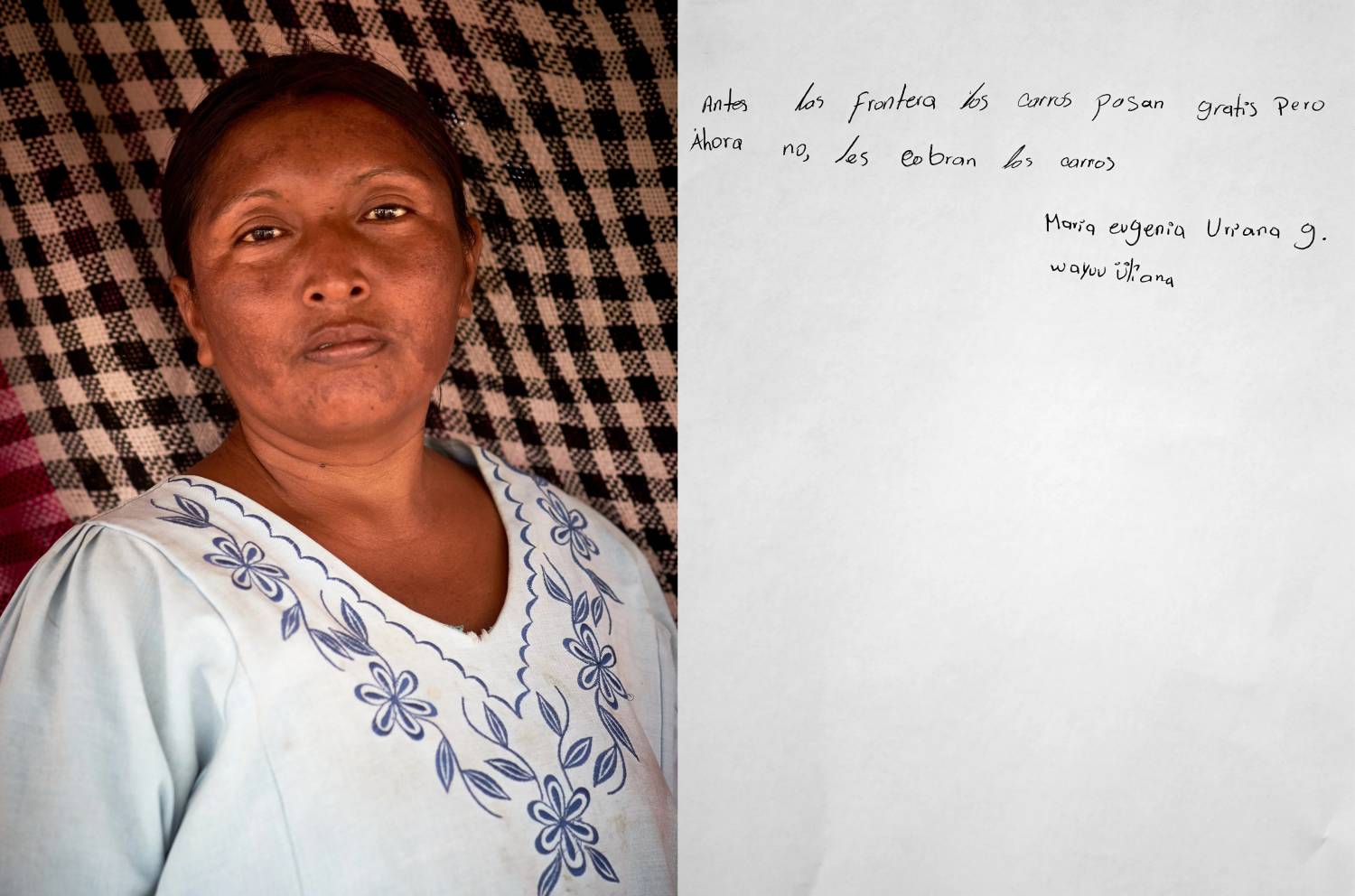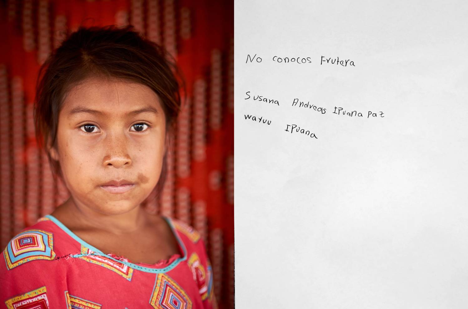 Con las palabras sabias de las mujeres mayores, jóvenes y niñas del pueblo Wayuu, esta serie de retratos narra lo que representa para ellas el pertenecer a un territorio al que le han impuesto una línea fronteriza entre Colombia y Venezuela.